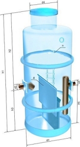 Принцип работы основан на разнице плотностей воды и жиров. Сточные воды поступают в резервуар жироуловителя, где происходит замедление потока. Жиры, будучи легче воды, всплывают на поверхность, образуя слой, который периодически удаляется. Очищенная от жиров вода затем направляется в систему канализации.